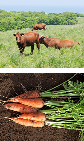 有機農産物・無添加食品等の販売において、輸入飼料に頼ることなく国内産飼料の自給する畜産の取り組み、貴重な水産資源を無駄にせず、食べることで国産の水産業従事者を応援出来る取り組みなどを行っています。
