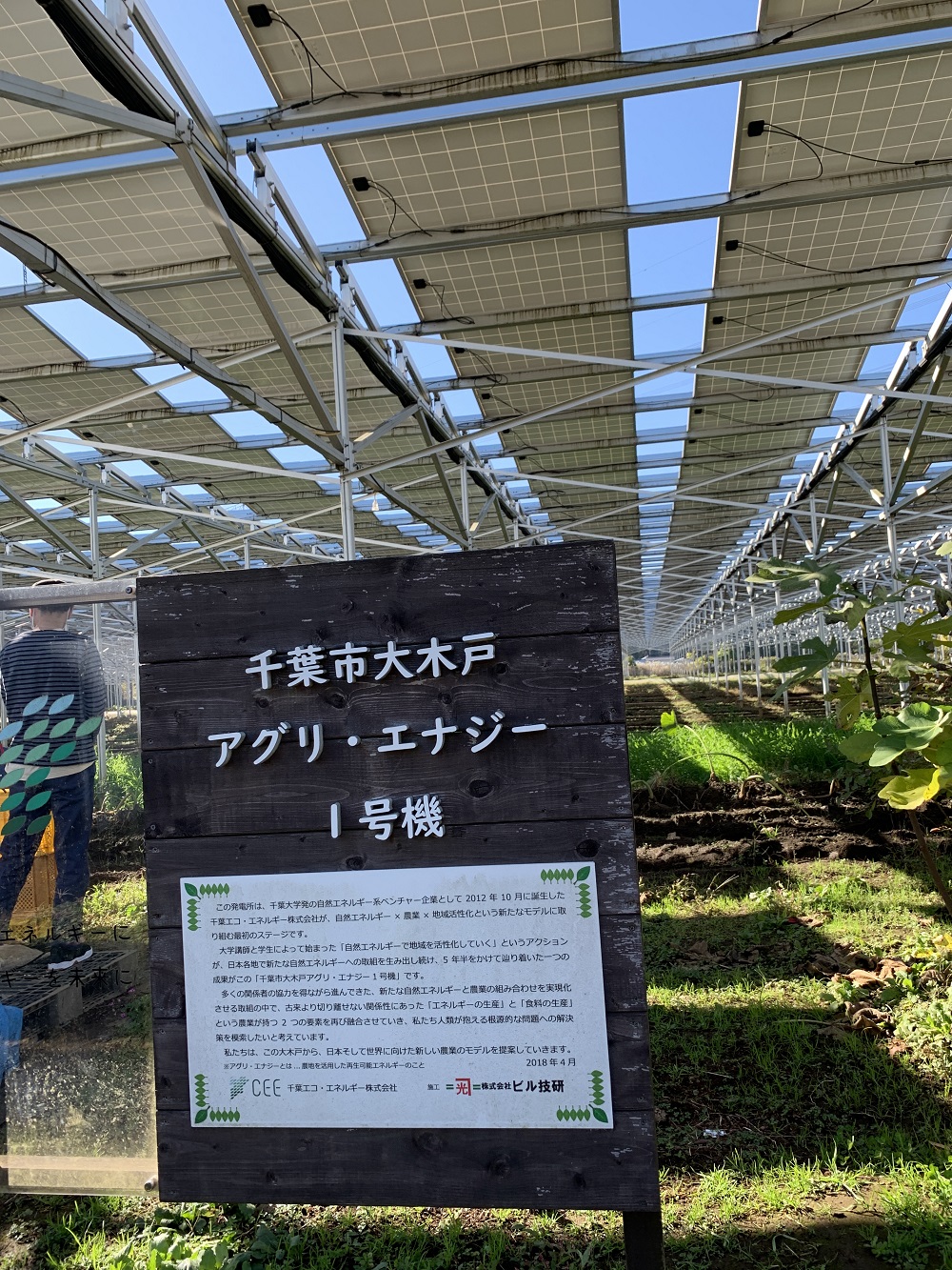 「千葉エコ・エネルギー株式会社」代表取締役 馬上 丈司(まがみ たけし)さんがソーラーシェアリングを実践している千葉市大木戸の自社農場を見学しました。