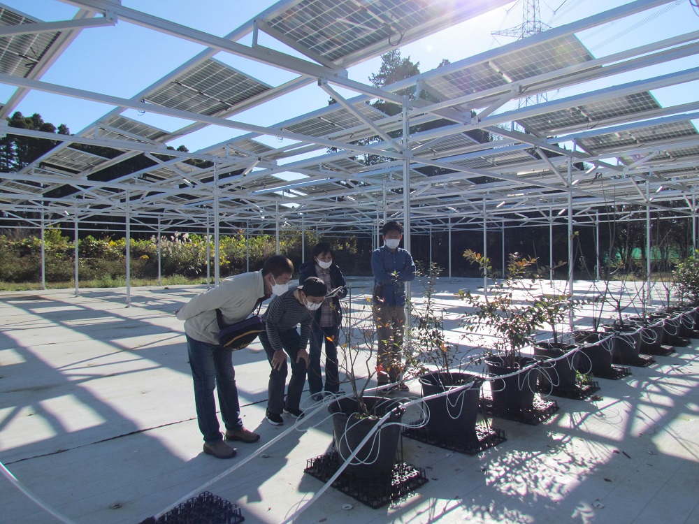 鉢植えのブルーベリーを栽培中。やや日差しを遮る方がブルーベリーは良く育つため、ソーラーシェアリングに適しているそうです。