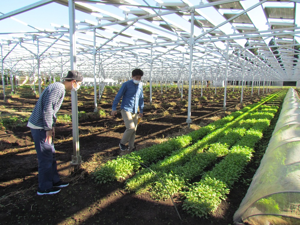 会社の事業の一つとして、千葉市大木戸で耕作放棄地を活用したソーラーシェアリングの自社農場で野菜や果物の栽培を行っています。