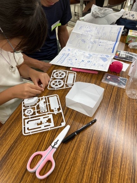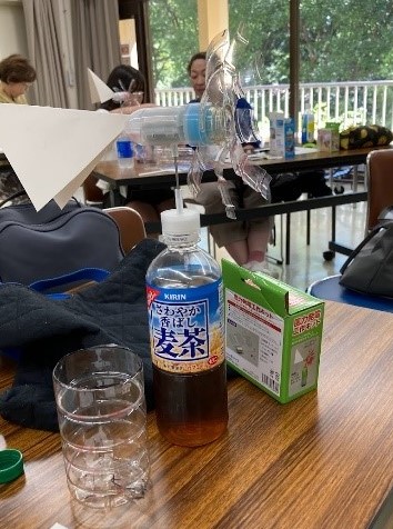 また、ペットボトルの種類によって、炭酸飲料のボトルなどは硬くて重いので風を受けても風車が回りにくく、薄すぎると風車に角度をつけたりし辛いので、ちょうどよい薄さ軽さのペットボトルを持参いただきました。