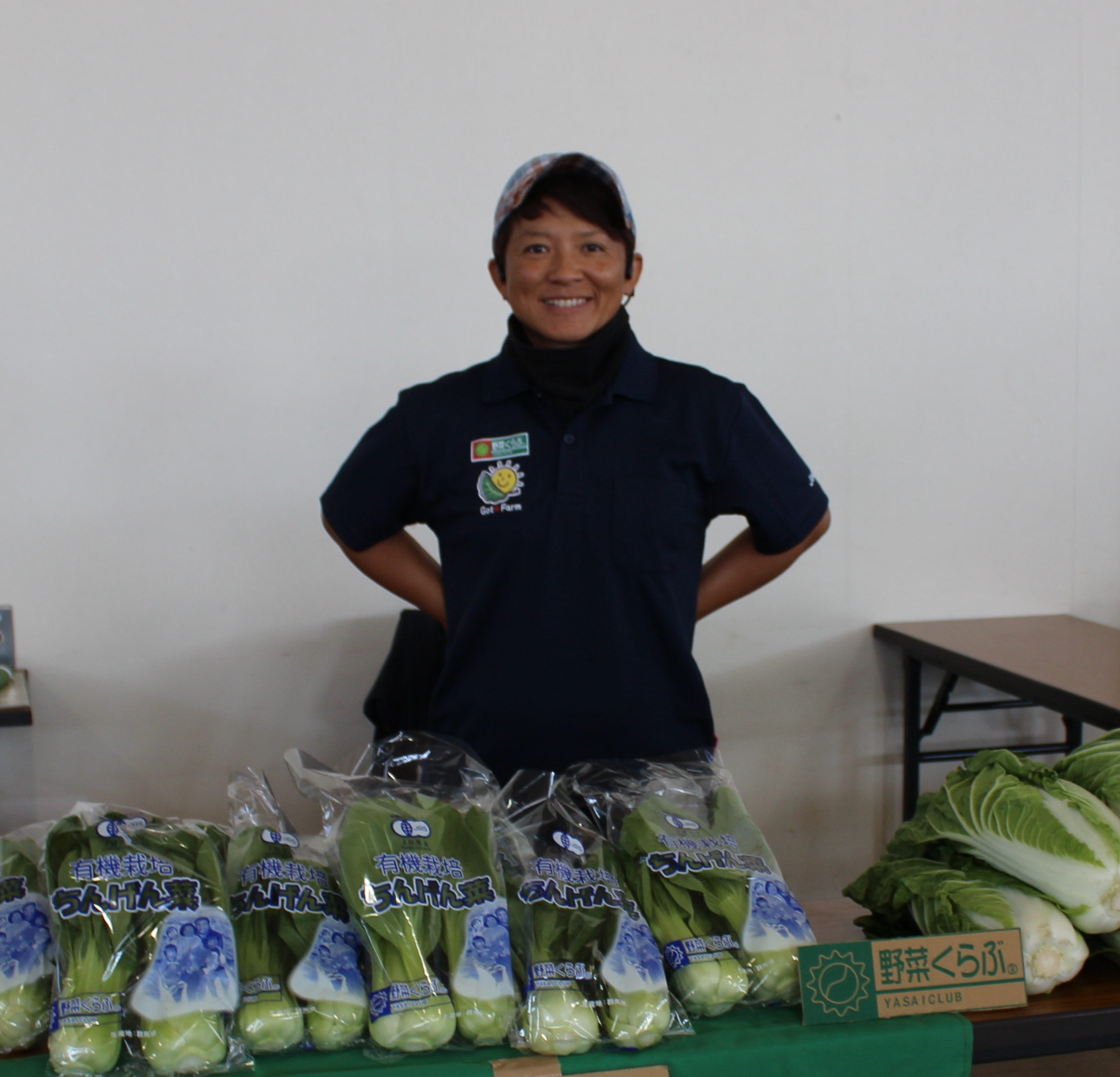 有機栽培あゆみの会からは丸山さんが両日ともに登場!山田さんのれんこんはもちろん、根つきパクチーや大葉、ルッコラなどを販売します。