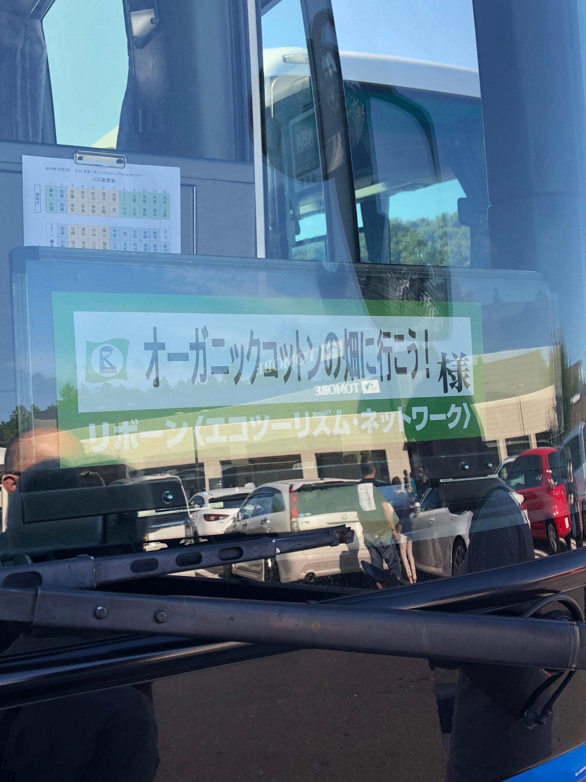 移動はBDF(バイオディーゼルフューエル)という家庭用の廃油をリサイクルして動く「天ぷらバス」に乗って約3時間、福島県いわき市にあるオーガニックコットン畑まで向かいます。